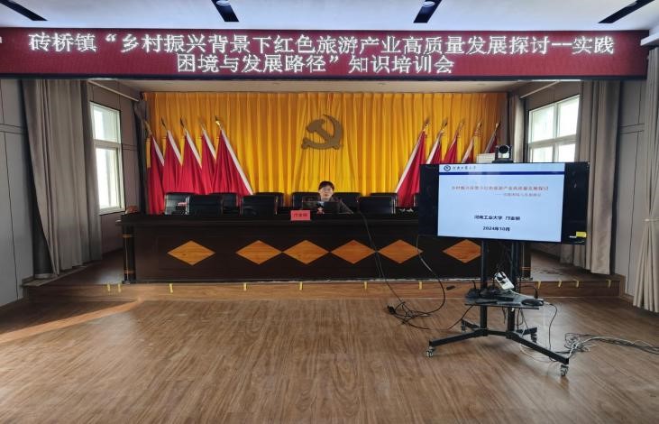 旅游管理专家邝金丽教授随河南工业大学乡村振兴特派团参加“助力光山乡村振兴”砖桥镇相关活动。邝金丽教授作为乡村干部特色经济发展宣讲组主讲,对砖桥镇乡村干部开展“乡村振兴背景下红色旅游产业高质量发展探讨”知识培训。砖桥镇政府相关人员及各村支部书记参加了培训。