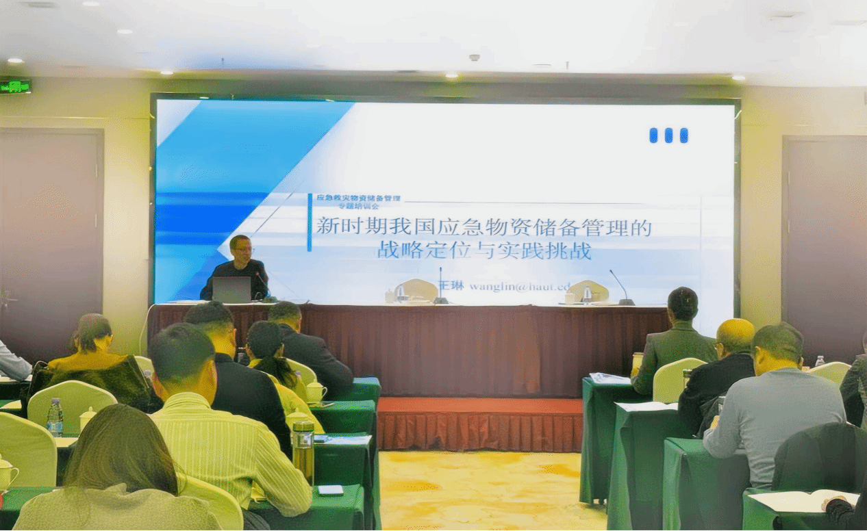 培训期间,王琳副教授围绕“新时期我国应急物资储备管理的战略定位与实践挑战”主题展开专题讲解。他系统阐述了当前我国应急救灾物资储备管理的战略定位、政策要求、发展形势、现实挑战及创新方向等核心内容,并与参会人员进行深度交流研讨。他指出,应急物资储备管理是国家应急体系的核心支撑,更是国家治理能力现代化的重要体现,是保障国家安全的“压舱石”与稳定经济社会发展的“定盘星”,在统筹发展和安全大局中具有基础性、支撑性关键地位。