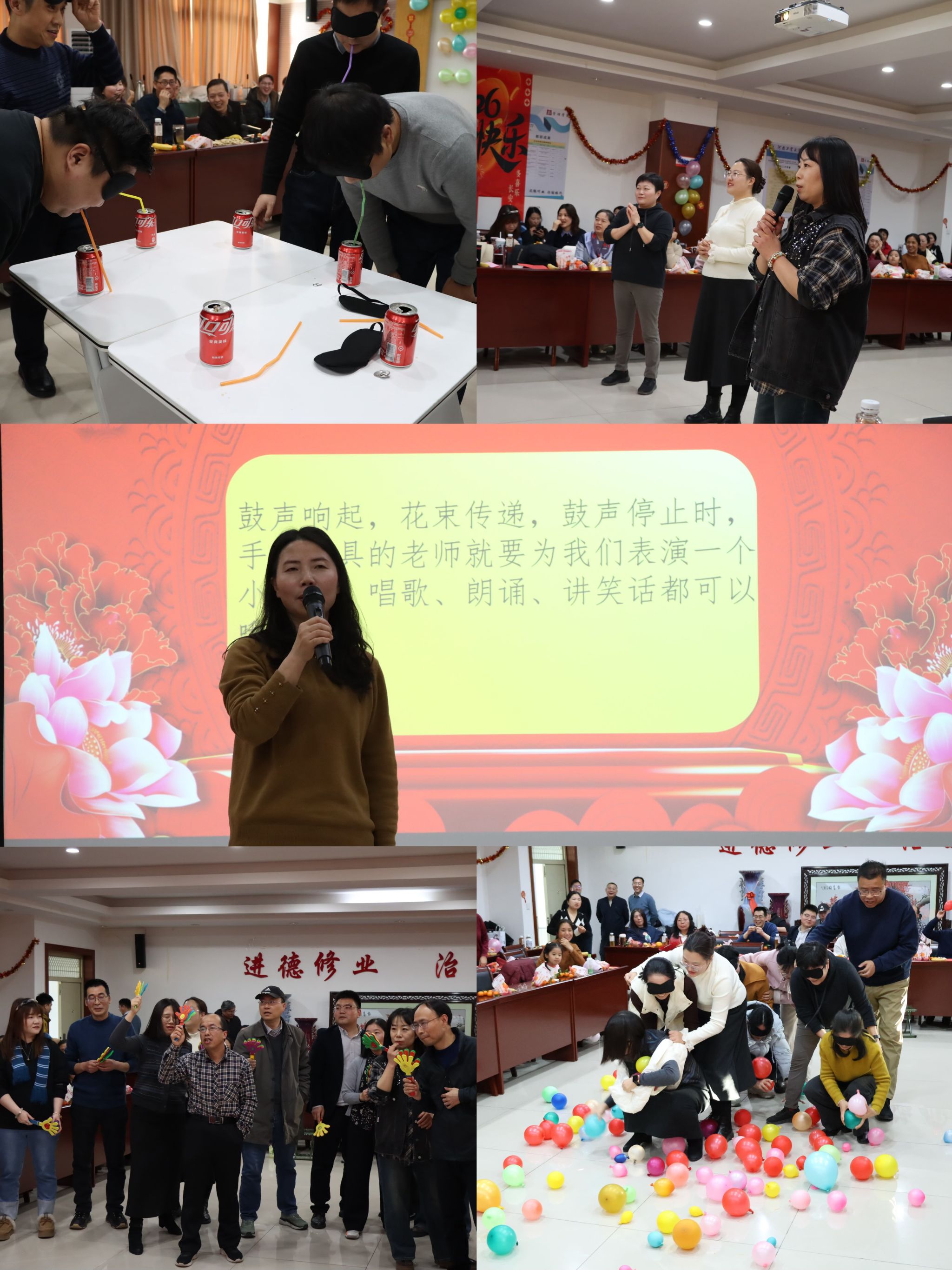 除了精彩的文艺表演,联欢会还设置了趣味游戏与幸运抽奖环节,将现场欢乐氛围持续升温。“蒙眼喝可乐” 考验感官敏锐度,“趣味绕口令” 比拼口才与反应速度,“贪吃蛇大战” 尽显团队协作默契,“听歌识曲” 引爆音乐知识大挑战,“击鼓传花” 更是掀起全员参与的即兴狂欢。穿插其间的抽奖活动,让每位参与者都满怀期待与惊喜,不仅为联欢会增添了满满的趣味性与参与感,更将学院对老师们的关怀与温暖,传递到了每个人的心间。