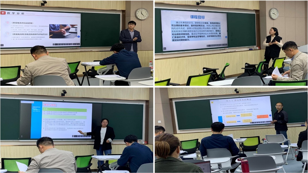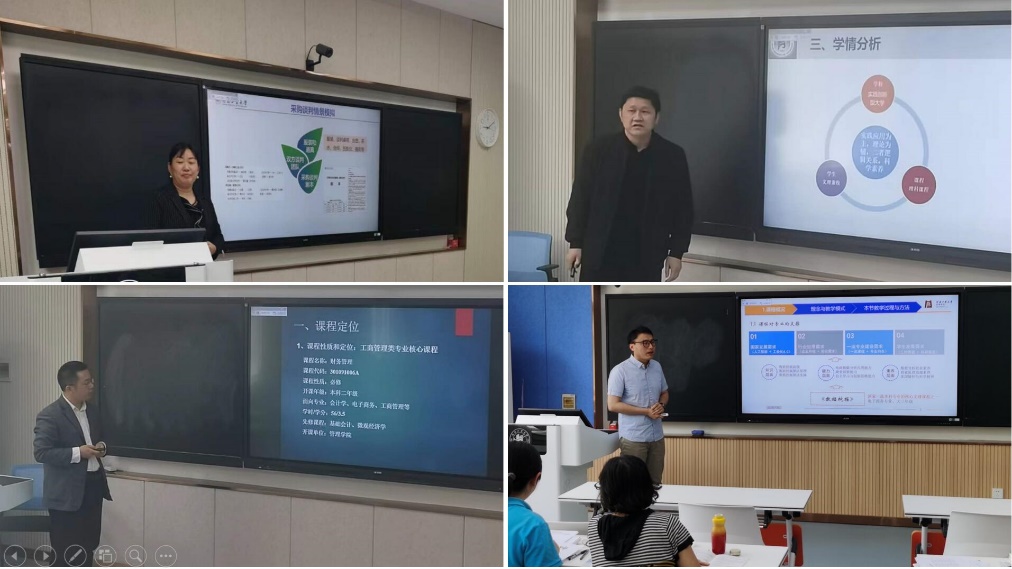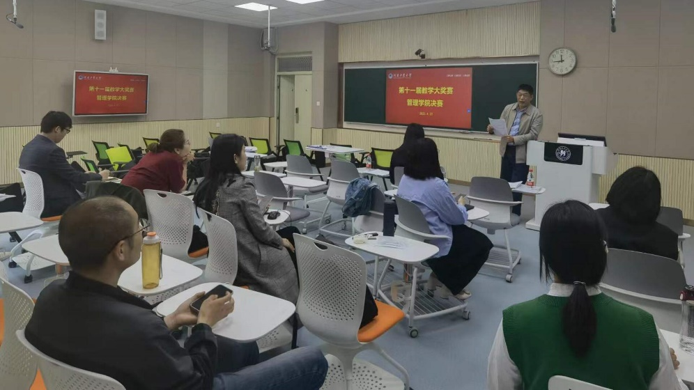 在3329、3330和3331智慧教室举行了校第十一届教学大赛学院初赛。竞赛分副教授组、讲师A组(教龄3年以上)和讲师B组(教龄不足3年)三个组别,共计20名教师参赛。评委由戴晓鹂、冯雨和程大友3名学校教学督导以及12名学院教学督导组成。