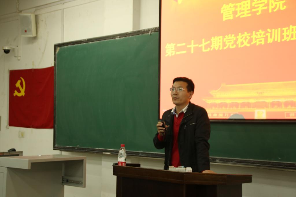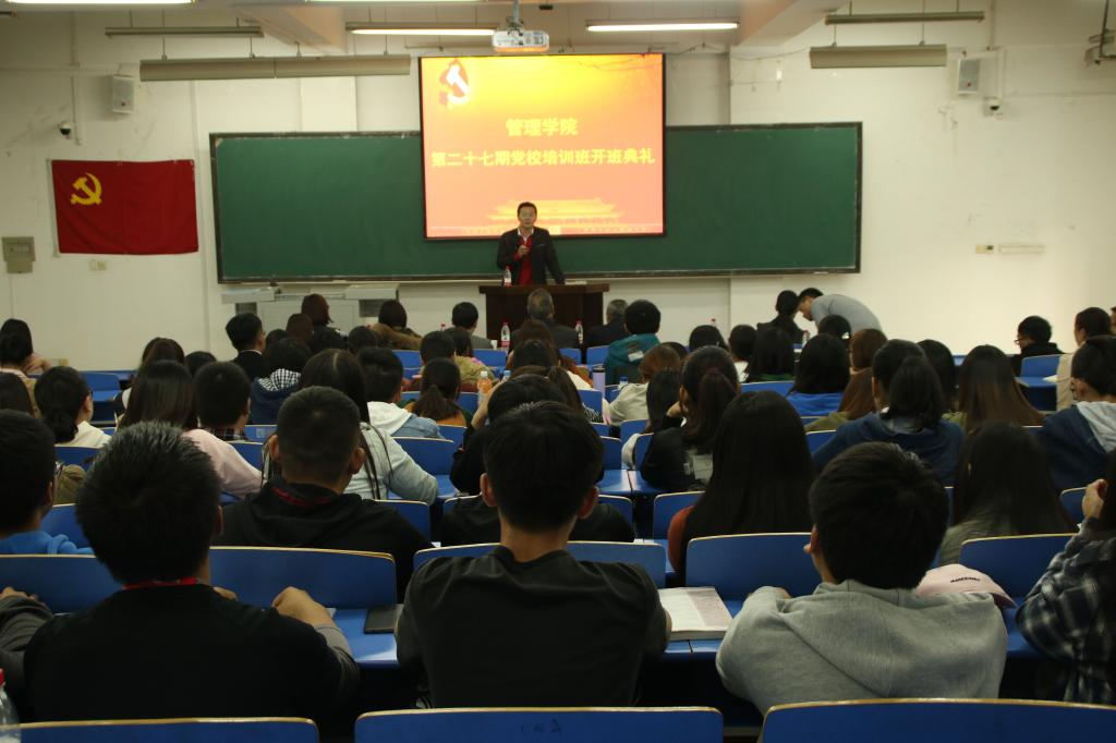 分党校第二十七期党课培训开班典礼在4420教室举行,学校特邀党建组织员原粮油食品学院党总支书记李胜利、原离退休处处长樊先云、原亚洲成人