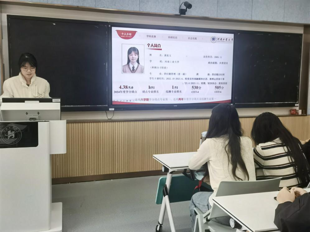 为进一步明确学业发展方向,提升深造竞争力,10月14日,2024级供应链管理2401班和2402班举办主题班会,班主任顾翠伶老师特邀学院优秀学生代表、供应链管理2202班黄张玉同学作保研经验分享。专业全体同学及班主任共同参与本次活动。