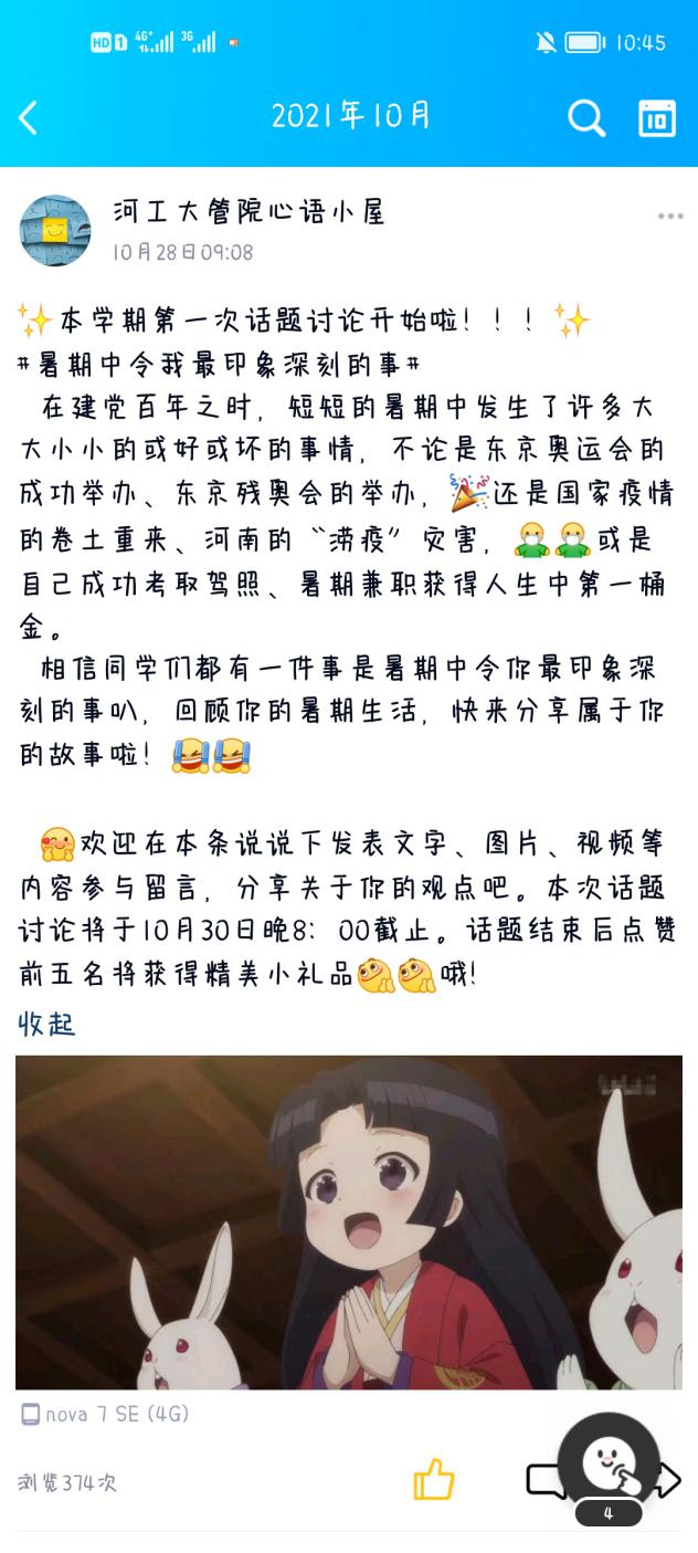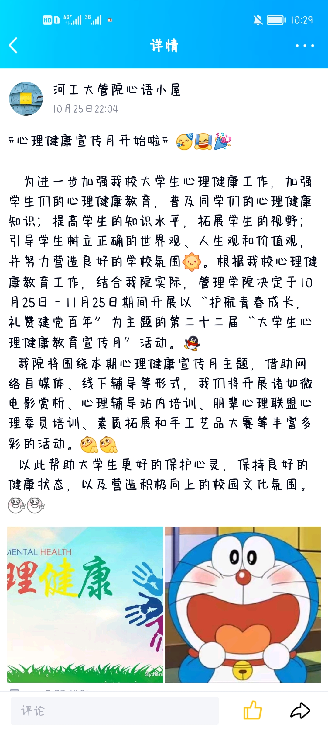 同学们暑期的经历,充分利用网络平台与同学们交流,也通过这个平台加强同学们之间的互动,增强同学们对心理健康月活动的参与度。