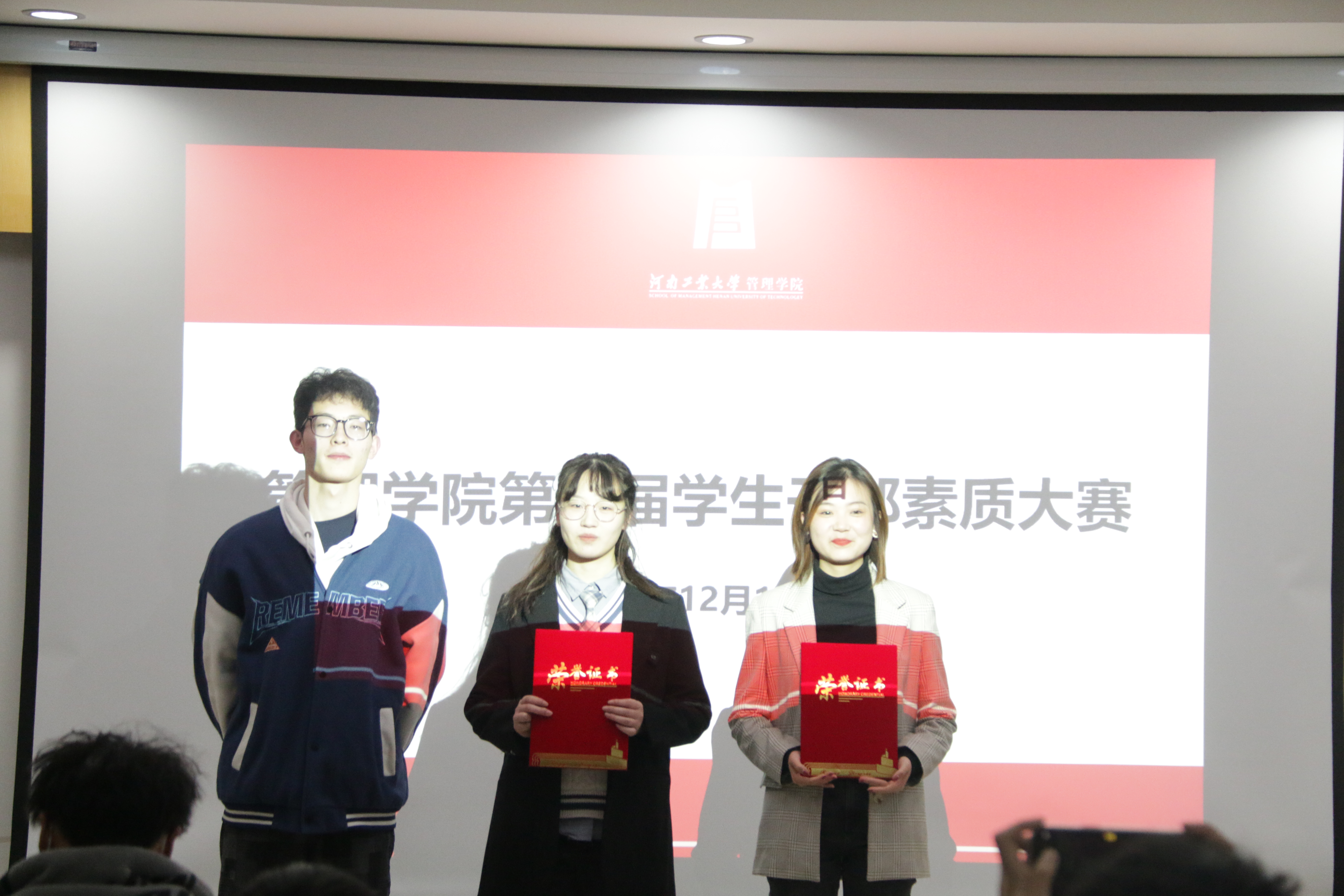 本次大赛以“树学生干部新风,展管院学子风采”为主题,经过初赛、复赛层层选拔,共十二名选手进入决赛。决赛共分为主题演讲、现场答辩及现场问答三部分。主题演讲环节,参赛选手围绕对学生干部的认识,进行精彩绝伦的演讲,赢得现场观众掌声连连;现场答辩环节,参赛选手随机抽取题目,充分展现了思维、语言表达能力及临场发挥能力;现场问答环节,评委进行提问,参赛选手一一从容应对,得到一致好评。最终,经过激烈角逐,雒心怡、孙羽两位同学获得本次比赛特等奖,刘年康等四位同学获得一等奖,周佳等六位同学获得二等奖。