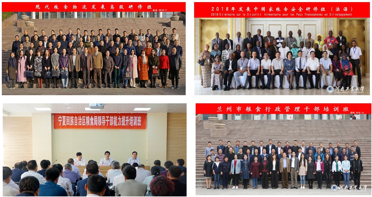 依托全国粮食行业(郑州)教育培训基地,为中国储备粮管理总公司、豫粮集团等粮食大型企业及全国20多个省市开展了有关粮食安全战略、粮食政策改革与解读、粮食应急供应、粮食现代物流、粮食产业经济与前沿科技等专题培训。